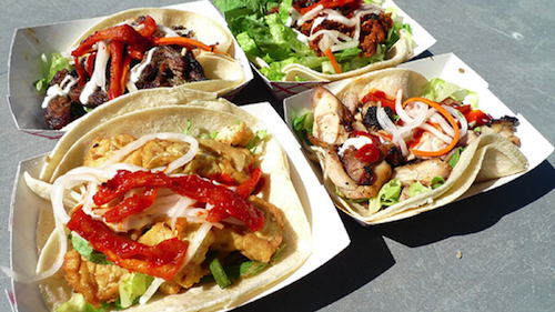 „Und hier bin ich, esse mein drittes oder viertes Taco, genieße das schöne Wetter und plane meine nächste Mahlzeit, bin erfreut über die Stimmung, die auf dem Parkplatz herrscht, betrachte den Food Truck und frage mich, warum alle diese Leute für dasselbe Ding anstehen, und wie dieses berühmte Gericht vor meinen Augen zu etwas Kultigem wird und wie verschiedensten Kulturen sich in eine Teighülle einwickeln lassen!“